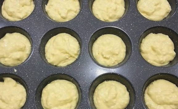 - Giet het bananendeeg in kleine vormpjes en bak 25 minuten in een voorverwarmde oven. Geschikte temperatuur is 180 graden.