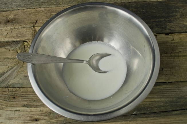 - Giet kefir in een comfortabele diepe kom.