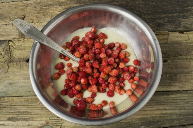 - We vullen de massa aan met aardbeien naar smaak.