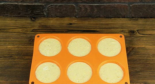 - Giet het deeg in kleine vormpjes en bak 20 minuten. De optimale oventemperatuur is 180 graden.