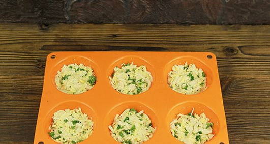 - We verdelen het werkstuk in kleine vormen en bakken 25 minuten in een voorverwarmde oven op 180 graden.
