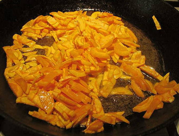 - Bak de wortelen in olijfolie tot ze zacht zijn.