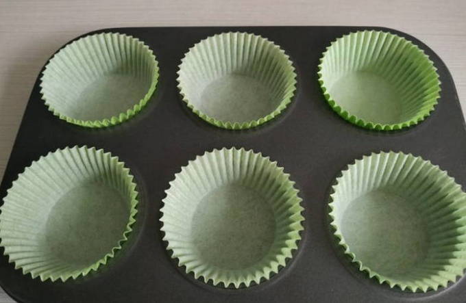 - Plaats papieren vormpjes in de cupcakevorm.