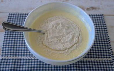 - Roer het deeg tot een homogene samenstelling is verkregen en de klontjes verdwijnen.