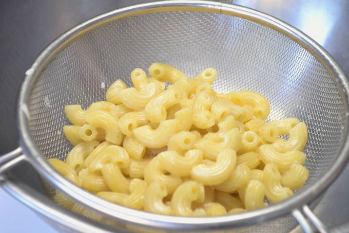- Spoel de pasta na het koken af onder koud water: dit helpt de resterende gluten te verwijderen zodat de pasta niet aan elkaar plakt.