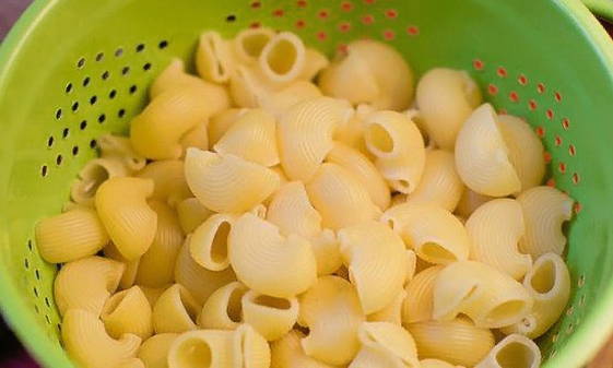 Gooi de gekookte pasta weg in een vergiet, laat de vloeistof weglopen en spoel de producten af onder stromend water. Het is niet nodig om de pasta af te spoelen, dat is aan jou.