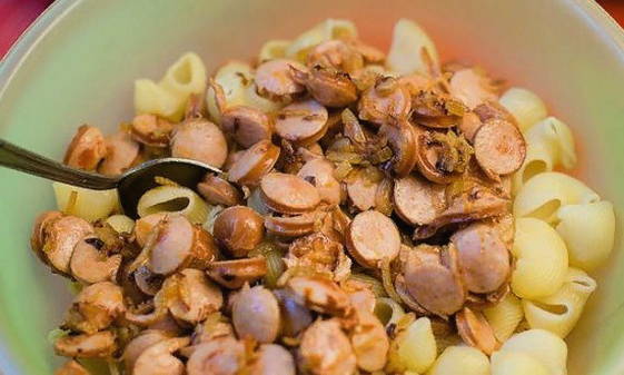 Hoe kook je snel en gemakkelijk pasta met worstjes in een pan?