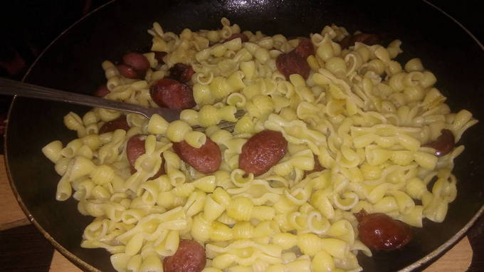 Hoe kook je snel en gemakkelijk pasta met worstjes in een pan?