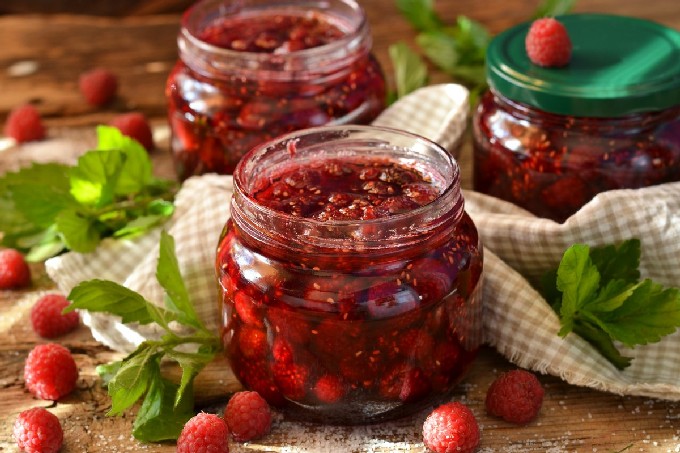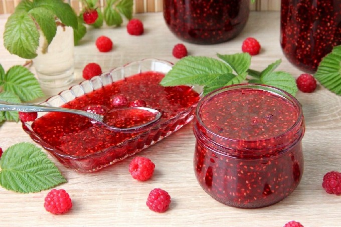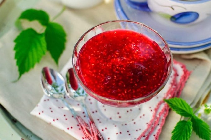 De jam volgens dit recept wordt niet dik, maar ongelooflijk lekker. We gebruiken geen additieven, verdikkingsmiddelen en gebruiken iets minder suiker in de conventionele 1:1 verhouding, en frambozen hebben niet genoeg natuurlijke pectine om te geleren. Maar de jam behoudt de beste eigenschappen en smaak van verse bessen.