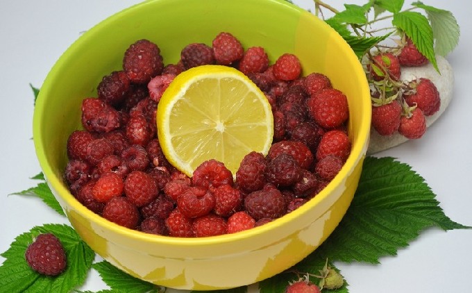 Laten we frambozen bereiden. We zoeken naar de aanwezigheid van afval, als er insecten in de bes voorkomen - het is beter om gedurende 10 minuten in een zoutoplossing (1 el. L zout per 1 l. Water) te weken, pas daarna moet u de bes meerdere keren goed, en als de bes goed, schoon en zelfgemaakt is, kun je niet wassen. In ieder geval moet de bes voorzichtig worden behandeld om hem niet te beschadigen.