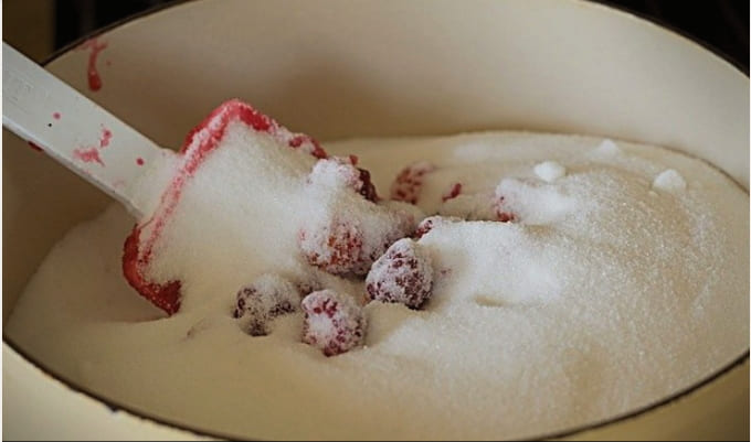 In dit recept is het raadzaam om dichte en hele mooie bessen te gebruiken die niet overrijp zijn, dit zal de bessenconsistentie beter behouden. We zullen ook een gelijke hoeveelheid suiker en bessen gebruiken, waardoor de jam dikker wordt.