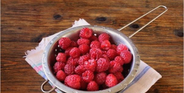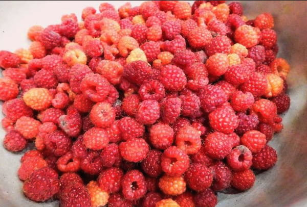 - We sorteren frambozen, verwijderen slechte en onrijpe bessen, afval en levende wezens. Spoel de bes zo nodig af, giet hem in een vergiet en laat het water weglopen en droog de bes.