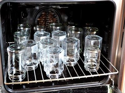 Spoel potten en deksels af met soda, spoel af. Kook de deksels, steriliseer de potten in de oven.