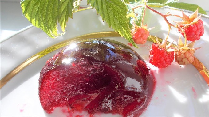 De dichtste gelei wordt verkregen uit bessen met toevoeging van gelatine. Deze frambozengelei kan in blokjes worden gesneden en behoudt zijn vorm.