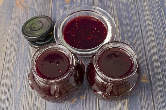 Dikke frambozengelei is een must-have in elke kelder. Je kunt het bij de thee serveren met een brood en het in gebakken goederen doen en er een hapje van nemen met pannenkoeken. Het product is veelzijdig en zeer aromatisch, blijft goed in vorm en smaakt goed.