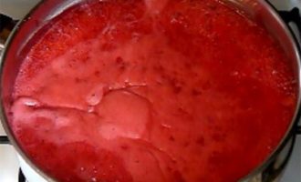 - Voeg de gezwollen gelatineuze massa toe aan de bessenmassa, voeg citroenzuur toe en kook de gelei gedurende 15 minuten, af en toe roerend.