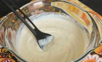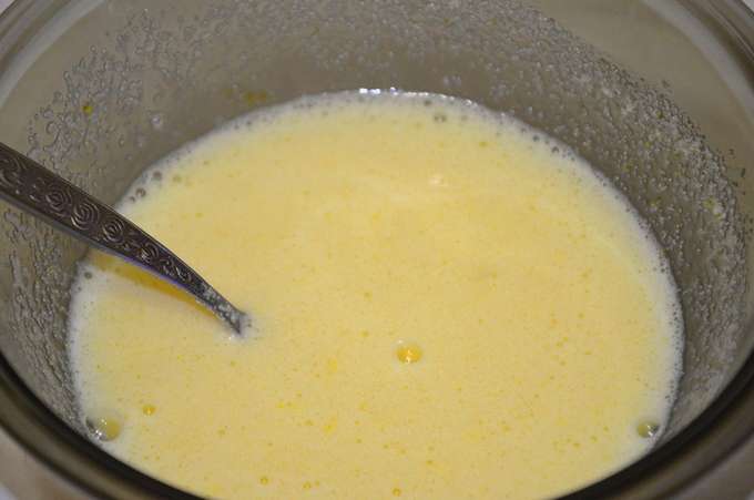 - Klop eieren met suiker en voeg dan kefir toe.