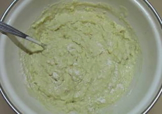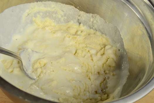 - Meng vervolgens het griesmeel en de wrongelmassa. Het deeg moet homogeen zijn, zonder klontjes.