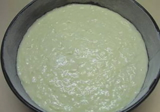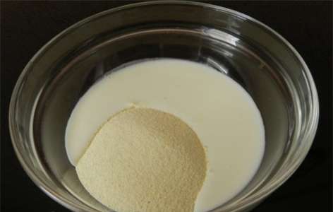 - Giet griesmeel met kefir bij kamertemperatuur, laat het mengsel 30 minuten staan.