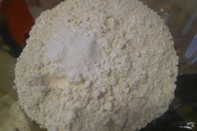 - Voeg bakpoeder toe aan bloem en zeef dit mengsel.