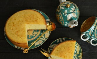 Bak het manna 40-50 minuten in de oven. Koel de afgewerkte cake een beetje, leg hem op een schaal en verzamel de familie voor thee.