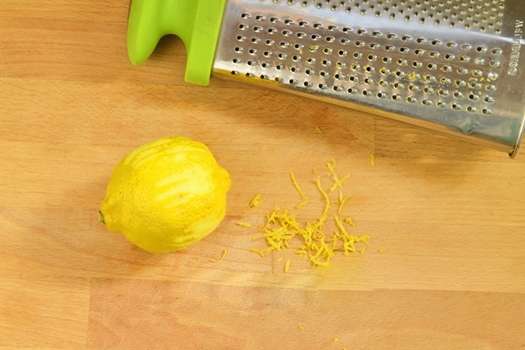 - Was de citroen met heet water, rasp de schil op een fijne rasp en pers het sap eruit. Voeg schil en citroensap toe aan het deeg, roer.