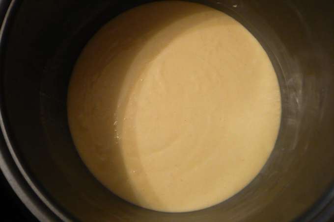 - Combineer alle voorbereide ingrediënten en kneed het deeg voor manna. In consistentie moet het lijken op middelzware zure room. Vet een kom van een multikoker in met boter en leg het deeg erin.
