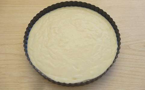 - Vet een ovenschaal in met boter en bestrooi met griesmeel. Giet het deeg in een vorm en strijk het glad.