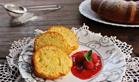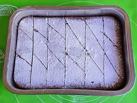 - Bak het manna 40-50 minuten op 200 graden. Strooi voor het serveren poedersuiker over de cake.