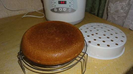 - Stel de modus "Bakken" in op 60 minuten. Open na de piep het deksel en controleer of de cake gaar is met een houten spies. Als het manna klaar is, haal het dan uit de kom en laat het iets afkoelen voordat je het serveert.