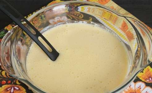 - Klop eieren met suiker en voeg dan kefir toe.