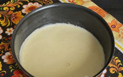 - Giet griesmeel met kefir bij kamertemperatuur, laat het mengsel 30 minuten staan.