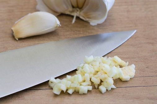 Pel de knoflook en hak de teentjes met een mes zo klein mogelijk.