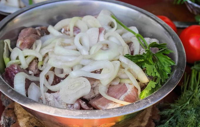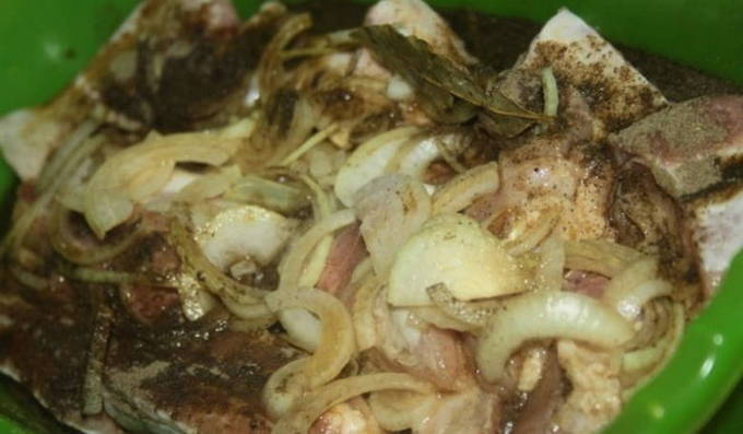 Dankzij deze marinade wordt een zeer smakelijk en niet minder calorierijk gerecht verkregen, dat perfect past bij elk ongecompliceerd bijgerecht van aardappelen of granen.