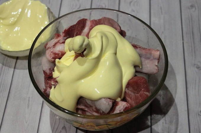 - Stapsgewijs recept voor het maken van marinade van varkensribbetjes met mayonaise
