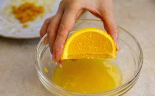 - Snijd daarna de sinaasappel in een paar kleinere plakjes en pers het sap eruit op een voor jou geschikte manier.