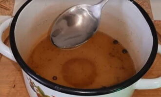 - De marinade koken. Meng in een pan een halve liter water, zout en kristalsuiker - meng grondig tot de kristallen volledig zijn opgelost.