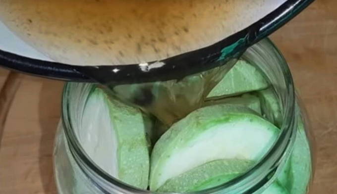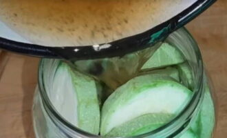 Vul de pot met gehakte courgette en vul deze met licht afgekoelde marinade.