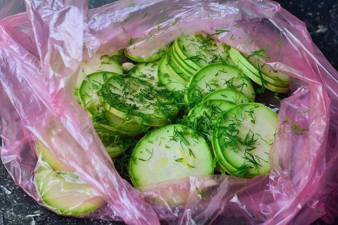 Hoe courgette snel in een zak marineren?