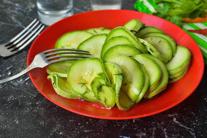 - Over een half uur hebben de courgettes de tijd om met kruiden te worden gevoed, maar als je ze een nacht in de kou laat staan, wordt het nog lekkerder. Eet smakelijk!