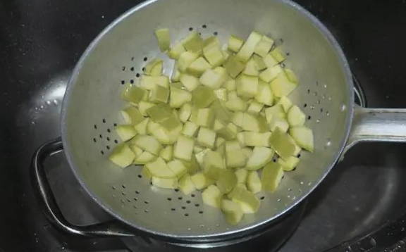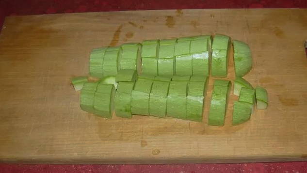 - Snijd de jonge courgette in middelgrote blokjes.