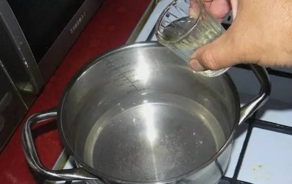 - Giet daarna precies 80 milliliter negen procent azijn erin.