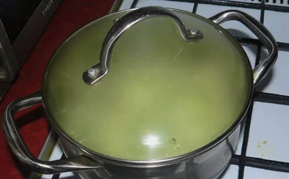 - Haal de kom van het fornuis, dek af met een deksel en laat de courgette 15 minuten weken.