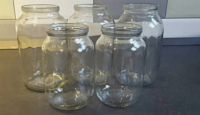 - We maken de potten en deksels schoon met soda. We wassen ze grondig. We zetten een pan water op het fornuis. Als het water kookt, verbranden we de potten en deksels ermee. We zetten de blikken met de nek naar beneden op een handdoek. We leggen de deksels naast de containers neer.
