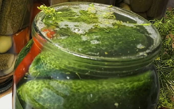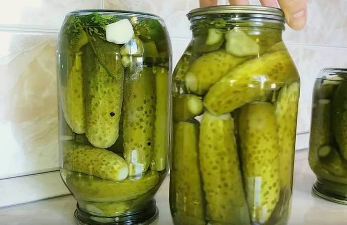 Ingelegde komkommers zonder sterilisatie in een pot van 1,5 liter