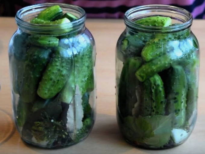 We zetten een pan water op de brander. Zet het vuur aan en breng de vloeistof aan de kook. Giet kokend water over komkommers in potten. Bedek de container met deksels en laat 5 minuten staan.