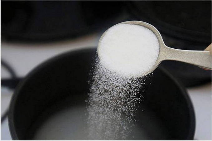 - Gedurende deze tijd zal het water afkoelen. Giet het terug in de pot. Zet de kachel weer aan. Voeg suiker en zout toe aan het water. Breng de vloeistof aan de kook en giet deze terug in de pot. We vertrekken gedurende 15 minuten onder een gesloten deksel.