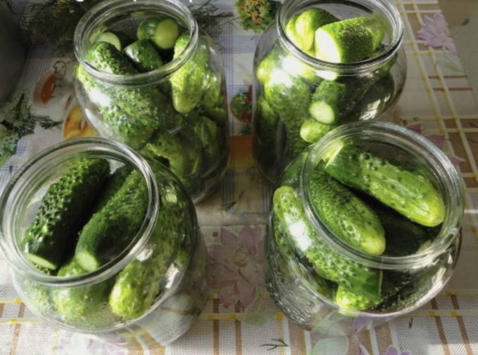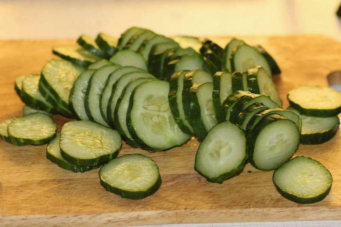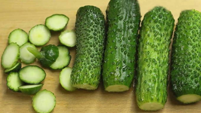 Voor het naaien is het beter om kleine komkommers te kiezen, als de vruchten groot zijn, moeten ze worden gesneden. Komkommers zijn licht zoet en erg krokant.
