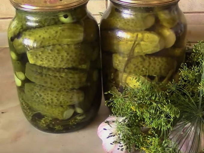 - Krokante ingelegde komkommers met azijn en olie voor de winter