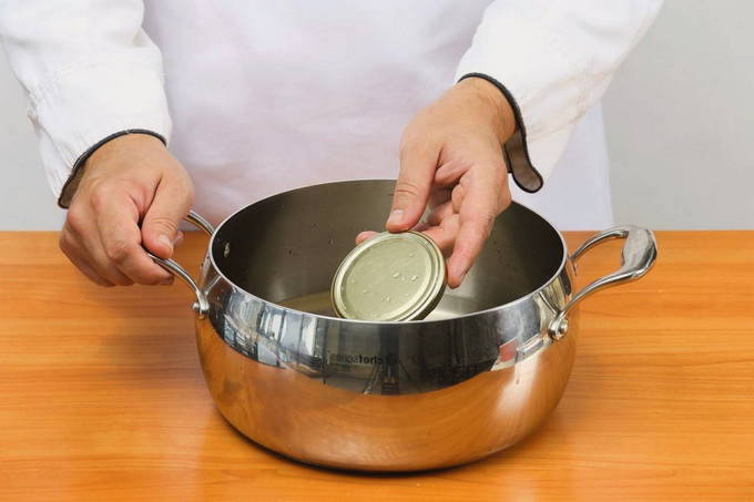 - Wij controleren de banken op gebreken. We reinigen hele containers met soda en spoelen grondig. We zetten water in een pan aan de kook. We zetten de kachel aan. Als het water borrelt, verbrand je de deksels ermee gedurende ongeveer 10 minuten.